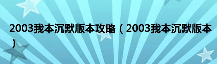 关于2003我本沉默版本攻略,2003我本沉默版本这个很多人还不知道,今天菲菲来为大家解答以上的问题,现在让我们一起来看看吧!