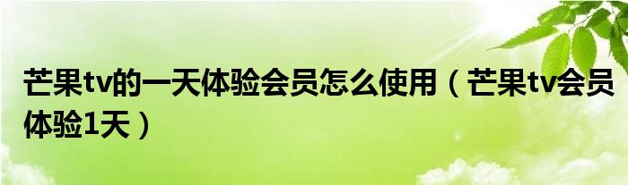 大家好,小晋来为大家解答以下问题,关于芒果tv的一天体验会员怎么使用,芒果tv会员体验1天很多人还不知道,今天让我们一起来看看吧!