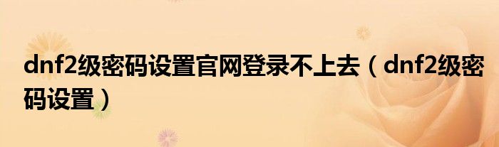 关于dnf2级密码设置官网登录不上去,dnf2级密码设置这个很多人还不知道,今天菲菲来为大家解答以上的问题,现在让我们一起来看看吧!