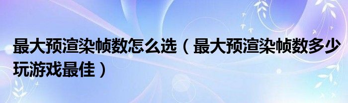 关于最大预渲染帧数怎么选,最大预渲染帧数多少玩游戏最佳这个很多人还不知道,今天菲菲来为大家解答以上的问题,现在让我们一起来看看吧!