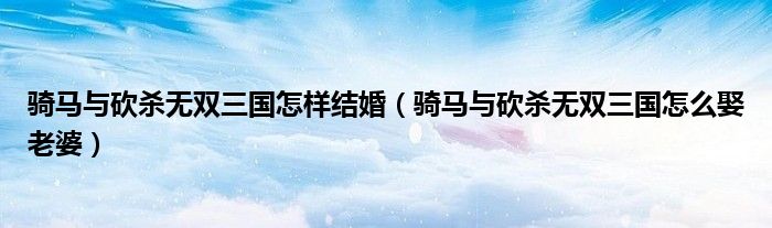 1、- - 无双三国好像不可以娶老婆,还有让妻子做丞相也是不可以的哦,你问的应该是骑马与砍杀战团.....。