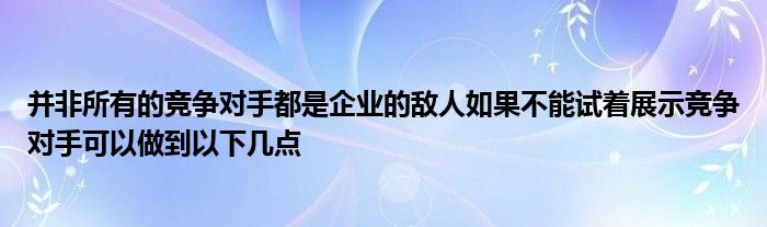 并非所有的竞争对手都是企业的敌人如果不能试着展示竞争对手可以做到以下几点