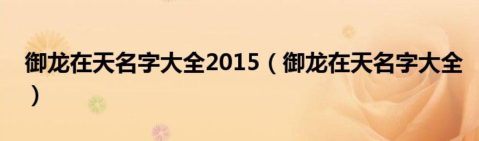 大家好,雨雨来为大家解答以上问题,御龙在天名字大全2015,御龙在天名字大全很多人还不知道,现在让我们一起来看看吧!