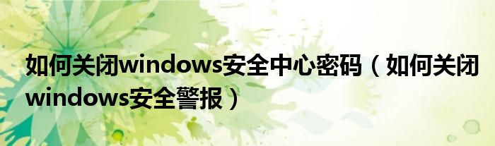 大家好,小飞来为大家解答以上问题,如何关闭windows安全中心密码,如何关闭windows安全警报很多人还不知道,现在让我们一起来看看吧!