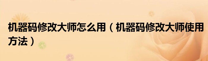 机器码修改大师怎么用(机器码修改大师使用方法)