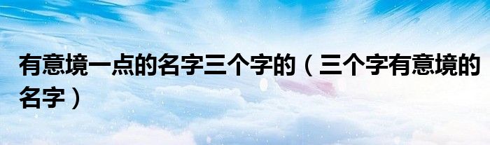 有意境一点的名字三个字的(三个字有意境的名字)