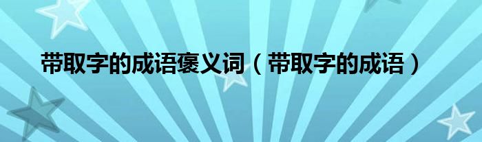 大家好,小晋来为大家解答以下问题,关于带取字的成语褒义词,带取字的成语很多人还不知道,今天让我们一起来看看吧!