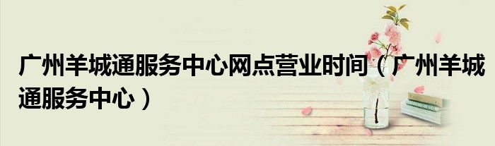 广州羊城通服务中心网点营业时间(广州羊城通服务中心)