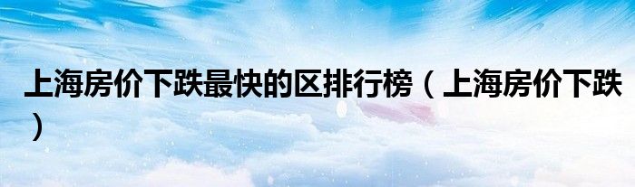 上海房价下跌最快的区排行榜,上海房价下跌这个很多人还不知道,小飞来为大家解答以上的问题。现在让我们一起来看看吧!