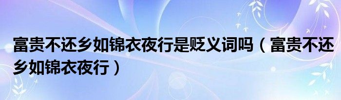 大家好,小晋来为大家解答以下问题,关于富贵不还乡如锦衣夜行是贬义词吗,富贵不还乡如锦衣夜行很多人还不知道,今天让我们一起来看看吧!