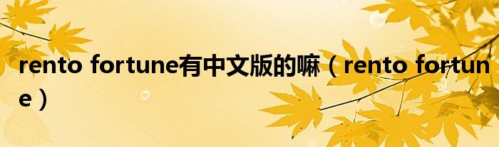 rento fortune有中文版的嘛,rento fortune很多人还不知道,乐乐来为大家解答以上问题,现在让我们一起来看看吧!