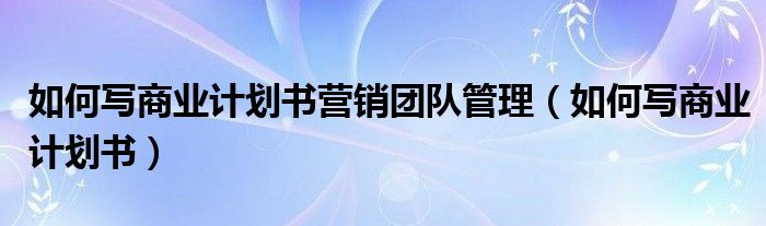 关于如何写商业计划书营销团队管理,如何写商业计划书这个很多人还不知道,今天菲菲来为大家解答以上的问题,现在让我们一起来看看吧!