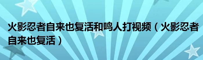 关于火影忍者自来也复活和鸣人打视频,火影忍者自来也复活这个很多人还不知道,今天菲菲来为大家解答以上的问题,现在让我们一起来看看吧!