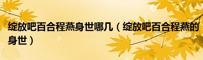 大家好,小晋来为大家解答以下问题,关于绽放吧百合程燕身世哪几,绽放吧百合程燕的身世很多人还不知道,今天让我们一起来看看吧!