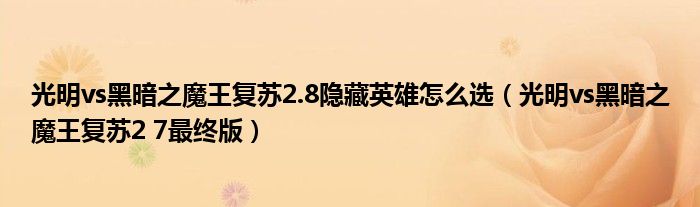 大家好,小飞来为大家解答以上的问题。光明vs黑暗之魔王复苏2.8隐藏英雄怎么选,光明vs黑暗之魔王复苏2 7最终版这个很多人还不知道,现在让我们一起来看看吧!