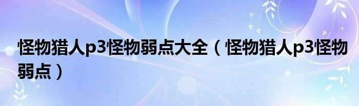 怪物猎人p3怪物弱点大全,怪物猎人p3怪物弱点很多人还不知道,乐乐来为大家解答以上问题,现在让我们一起来看看吧!