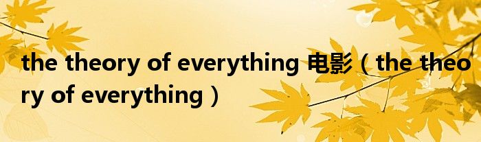 大家好,小飞来为大家解答以上的问题。the theory of everything 电影,the theory of everything这个很多人还不知道,现在让我们一起来看看吧!