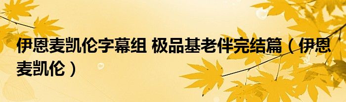 伊恩麦凯伦字幕组极品基老伴完结篇(伊恩麦凯伦)