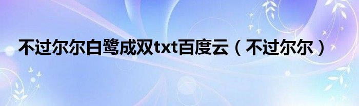 不过尔尔白鹭成双txt百度云(不过尔尔)