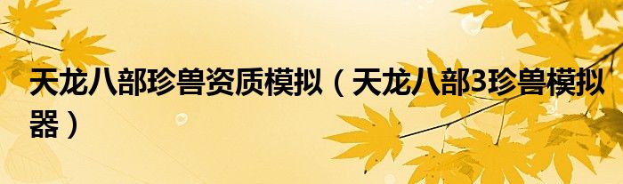 关于天龙八部珍兽资质模拟,天龙八部3珍兽模拟器这个很多人还不知道,今天菲菲来为大家解答以上的问题,现在让我们一起来看看吧!