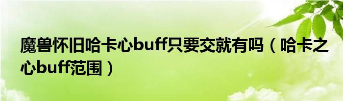关于魔兽怀旧哈卡心buff只要交就有吗,哈卡之心buff范围这个很多人还不知道,今天菲菲来为大家解答以上的问题,现在让我们一起来看看吧!