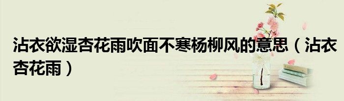 关于沾衣欲湿杏花雨吹面不寒杨柳风的意思,沾衣杏花雨这个很多人还不知道,今天菲菲来为大家解答以上的问题,现在让我们一起来看看吧!