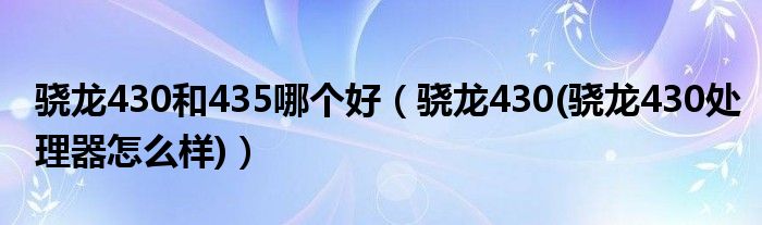 大家好,小常来为大家解答以上问题。骁龙430和435哪个好,骁龙430(骁龙430处理器怎么样)很多人还不知道,现在让我们一起来看看吧!