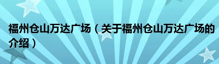 大家好,今天小乐来为大家解答以上的问题。福州仓山万达广场,关于福州仓山万达广场的介绍很多人还不知道,现在让我们一起来看看吧!