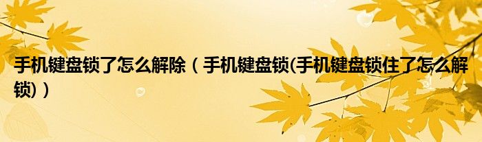 大家好,小常来为大家解答以上问题。手机键盘锁了怎么解除,手机键盘锁(手机键盘锁住了怎么解锁)很多人还不知道,现在让我们一起来看看吧!