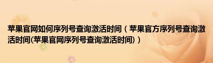 大家好,小常来为大家解答以上问题。苹果官网如何序列号查询激活时间,苹果官方序列号查询激活时间(苹果官网序列号查询激活时间)很多人还不知道,现在让我们一起来看看吧!