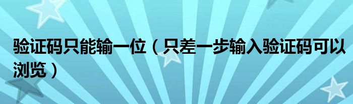 关于验证码只能输一位,只差一步输入验证码可以浏览这个很多人还不知道,今天菲菲来为大家解答以上的问题,现在让我们一起来看看吧!