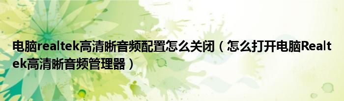 电脑realtek高清晰音频配置怎么关闭(怎么打开电脑Realtek高清晰音频管理器)