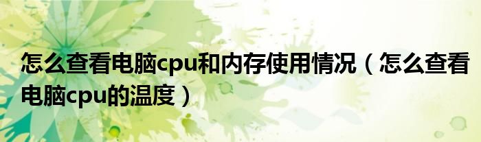 怎么查看电脑cpu和内存使用情况(怎么查看电脑cpu的温度)
