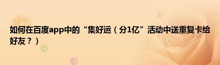 大家好,今天小悦来为大家解答以上问题。如何在百度app中的“集好运,分1亿”活动中送重复卡给好友?很多人还不知道,现在让我们一起来看看吧!