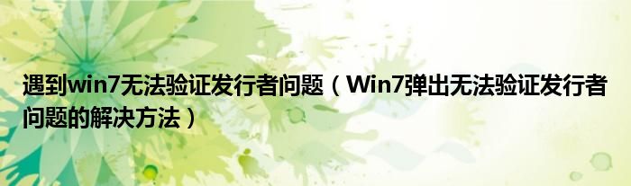 遇到win7无法验证发行者问题(Win7弹出无法验证发行者问题的解决方法)