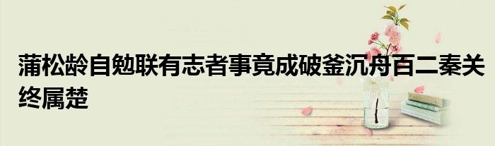 关于蒲松龄自勉联有志者事竟成破釜沉舟百二秦关终属楚这个很多人还不知道,今天菲菲来为大家解答以上的问题,现在让我们一起来看看吧!