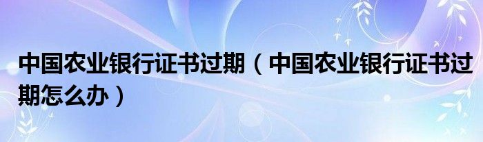 大家好,今天小悦来为大家解答以上问题。中国农业银行证书过期,中国农业银行证书过期怎么办很多人还不知道,现在让我们一起来看看吧!