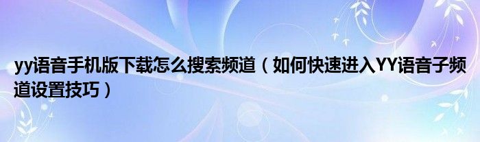 大家好,今天小悦来为大家解答以上问题。yy语音手机版下载怎么搜索频道,如何快速进入YY语音子频道设置技巧很多人还不知道,现在让我们一起来看看吧!