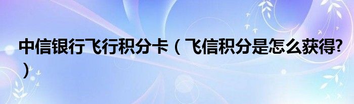 大家好,今天小悦来为大家解答以上问题。中信银行飞行积分卡,飞信积分是怎么获得?很多人还不知道,现在让我们一起来看看吧!