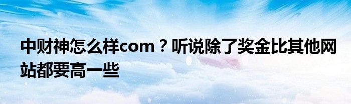 关于中财神怎么样com?听说除了奖金比其他网站都要高一些这个很多人还不知道,今天菲菲来为大家解答以上的问题,现在让我们一起来看看吧!