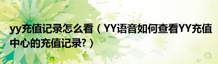 大家好,今天小悦来为大家解答以上问题。yy充值记录怎么看,YY语音如何查看YY充值中心的充值记录?很多人还不知道,现在让我们一起来看看吧!