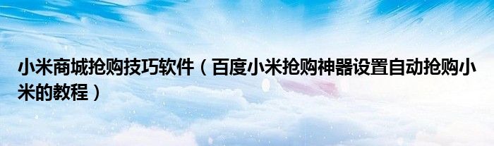 大家好,今天小悦来为大家解答以上问题。小米商城抢购技巧软件,百度小米抢购神器设置自动抢购小米的教程很多人还不知道,现在让我们一起来看看吧!
