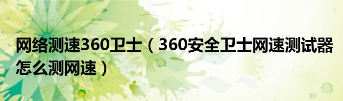 网络测速360卫士(360安全卫士网速测试器怎么测网速)