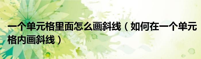 一个单元格里面怎么画斜线(如何在一个单元格内画斜线)