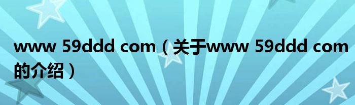 大家好,今天小乐来为大家解答以上的问题。www 59ddd com,关于www 59ddd com的介绍很多人还不知道,现在让我们一起来看看吧!