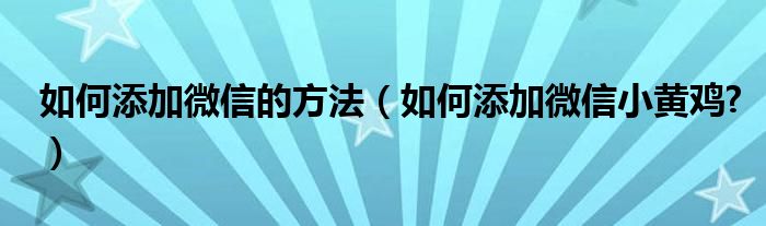 如何添加微信的方法(如何添加微信小黄鸡?)