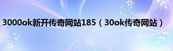 关于3000ok新开传奇网站185,30ok传奇网站这个很多人还不知道,今天菲菲来为大家解答以上的问题,现在让我们一起来看看吧!