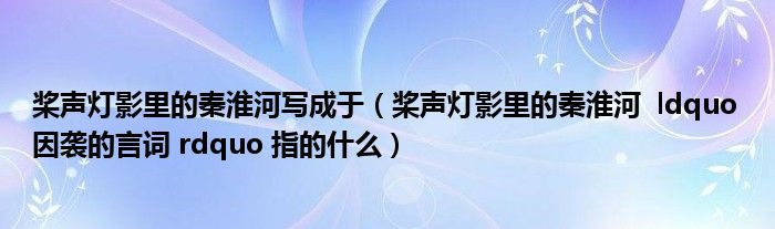桨声灯影里的秦淮河写成于(桨声灯影里的秦淮河 ldquo 因袭的言词 rdquo 指的什么)