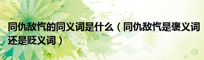 关于同仇敌忾的同义词是什么,同仇敌忾是褒义词还是贬义词这个很多人还不知道,今天菲菲来为大家解答以上的问题,现在让我们一起来看看吧!