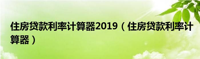 住房贷款利率计算器2019(住房贷款利率计算器)